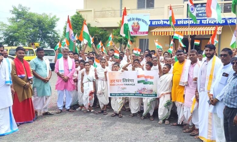 वेदपाठी विद्यार्थियों ने दिया हर घर तिरंगा, हर घर स्वच्छता का संदेश