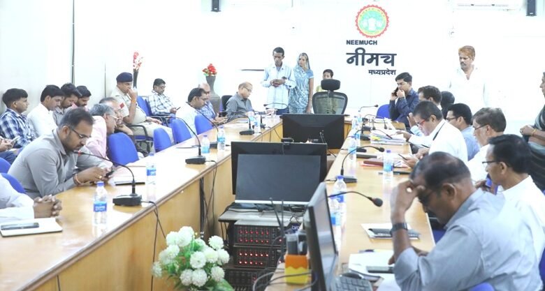 कलेक्टोरेट सभाकक्ष नीमच में मंगलवार को जनसुनवाई के दौरान जिला पंचायत सीईओ श्री अमन वैष्णव एवं एडीएम श्री बी.एस.कलेश ने जनसुनवाई करते हुए 38 आवेदकों की समस्याएं सुनी और उनका निराकरण करने के निर्देश भी संबंधित जिला अधिकारियों को दिए।