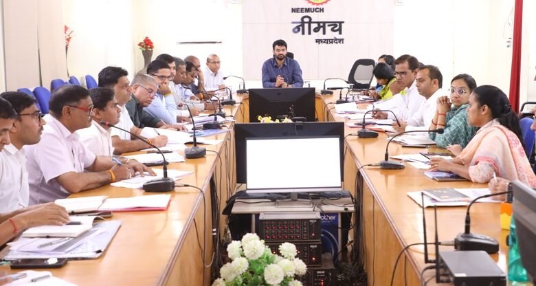 बैठक में एडीएम श्री बी.एस.कलेश, एसडीएम नीमच श्री संजीव साहू, जावद सुश्री प्रीती संघवी, मनासा सुश्री किरण आंजना, डिप्टी कलेक्टर श्री पराग जैन सहित सभी तहसीलदार एवं नायब तहसीलदार उपस्थित थे।