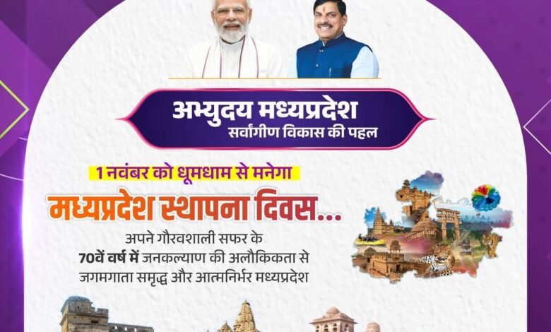 म.प्र.शासन के निर्देशानुसार एक से 3 नवम्बर 2025 तक मध्यप्रदेश स्थापना दिवस मनाया जा रहा हैं। जिला स्तरीय कार्यक्रम टाउन हॉल नीमच में प्रात:11 बजे से आयोजित किया जा रहा हैं। कलेक्टर श्री हिमांशु चंद्रा द्वारा जिला स्तरीय स्थापना दिवस समारोह के सफलतापूर्वक आयोजन एवं विभिन्न व्यवस्थाए सुनिश्चित करने के लिए विभिन्न जिला अधिकारियों को दायित्व सौंपे गये हैं। एडीएम श्री बी.एस.कलेश को सम्पूर्ण कार्यक्रम का नोडल अधिकारी नियुक्त किया गया हैं।