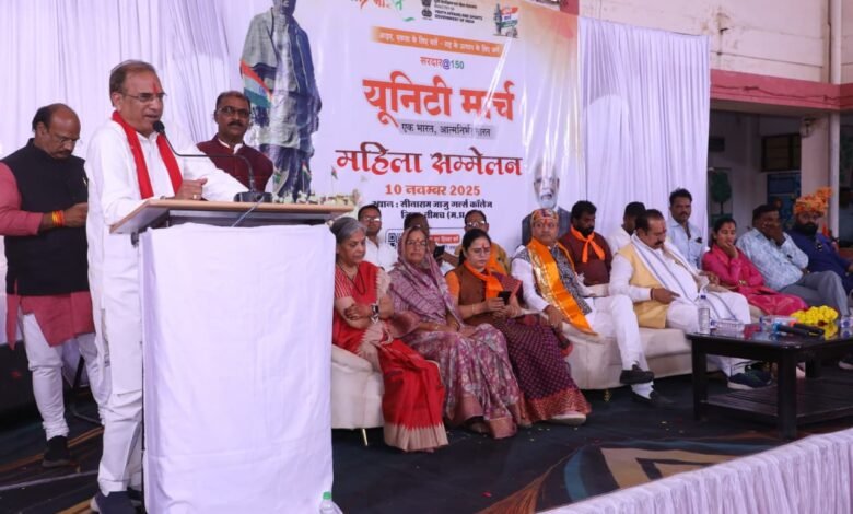 नीमच 10 नवम्बर 2025, लौह पुरूष सरदार श्री वल्लभ भाई पटेल की 150वीं जयंती के उपलक्ष्य में सोमवार को सांसद श्री सुधीर गुप्ता के नेतृत्व में धनेरिया काल से नीमच शहर तक वृहद यूनिटी मार्च पदयात्रा आयोजित की गई। एक भारत, आत्मनिर्भर भारत पदयात्रा के दौरान शासकीय जाजू कन्या महाविद्यालय नीमच में सांसद श्री सुधीर गुप्ता, जावद विधायक श्री ओमप्रकाश सखलेचा, नीमच विधायक श्री दिलीप सिह परिहार, जनपद अध्यक्ष श्रीमती शारदाबाई धनगर, नीमच न.पा.अध्यक्ष श्रीमती स्वाति चौपड़ा एवं जिला अध्यक्ष श्रीमती वंदना खण्डेलवाल की उपस्थिति में महिला सम्मेलन तथा भारतमाता चौराहे पर युवा सम्मेलन आयोजित किया गया। सम्मेलन में बड़ी संख्या में जनप्रतिनिधिगण, पार्षदगण, त्रिस्तरीय पंचायतों के पदाधिकारी, युवा एवं बडी संख्या में मातृशक्ति तथा आमजन उपस्थित थे।