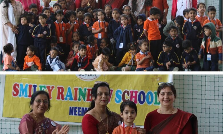 स्माइली रेनबो स्कूल में बाल दिवस का भव्य आयोजन उत्साह और उमंग के साथ टर्फ ग्राउंड पर किया गया, जहाँ बच्चों की मुस्कान, ऊर्जा और उल्लास पूरे वातावरण में झलकते रहे। कार्यक्रम की शुरुआत पारंपरिक दीप प्रज्वलन से हुई, जिसे **मुख्य अतिथि श्रीमती विद्या त्रिवेदी** (अध्यक्ष, भावानी शिक्षण समिति) सामाजिक सेविका श्रीमती प्रभा पाटीदार एवं स्कूल की डायरेक्टर **श्रीमती भावना पंत** ने संपन्न किया। कार्यक्रम का प्रारंभ बच्चों ने टॉर्च लाइट के माध्यम से शुभारंभ किया और उसके बाद नन्हे मुन्ने बच्चों द्वारा नृत्य एवं बाल गीतों की प्रस्तुति सहित अन्य रंगारंग कार्यक्रमों तथा रोचक खेल प्रतियोगिताओं में उत्साहपूर्वक भाग लिया।