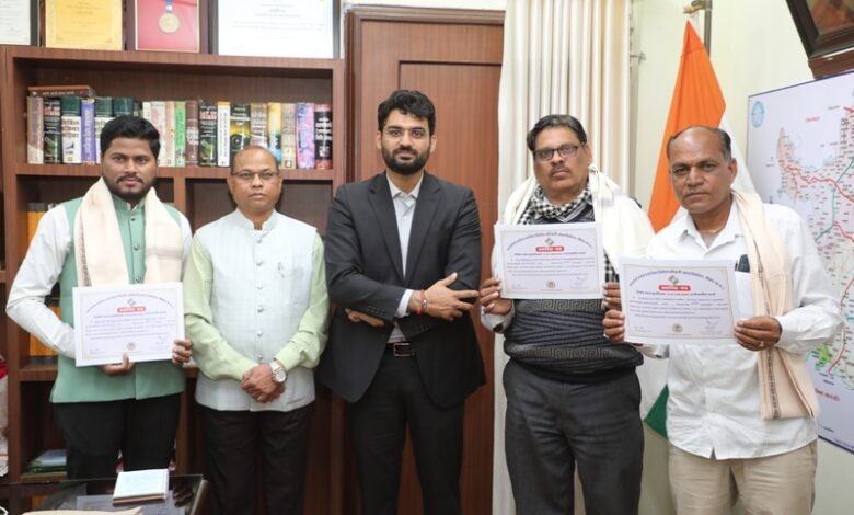 जिले में मतदाता सूची के गहन पुनरीक्षण (एस.आई.आर) के तहत शत -प्रतिशत मतदाताओं के ईम्युरेशन फार्मो का बी.एल.ओं. एप पर डिजिटलाईजेशन कार्य सर्वप्रथम पूर्ण करने वाले तीन बी.एल.ओं. को कलेक्टर श्री हिमांशु चंद्रा द्वारा शाल श्रीफल एवं प्रशस्ति पत्र भेंट कर कलेक्टोरेट में सम्मानित किया गया । उन्होने इन बीएलओं से उनके द्वारा किए गये कार्यो के बारे में चर्चा कर जानकारी ली तथा उन्हे अन्य बीएलओं को एसआईआर कार्य में सहयोग करने के लिए भी प्रेरित किया ।इस मौके पर एडीएम श्री बी.एस कलेश भी उपस्थित थे ।