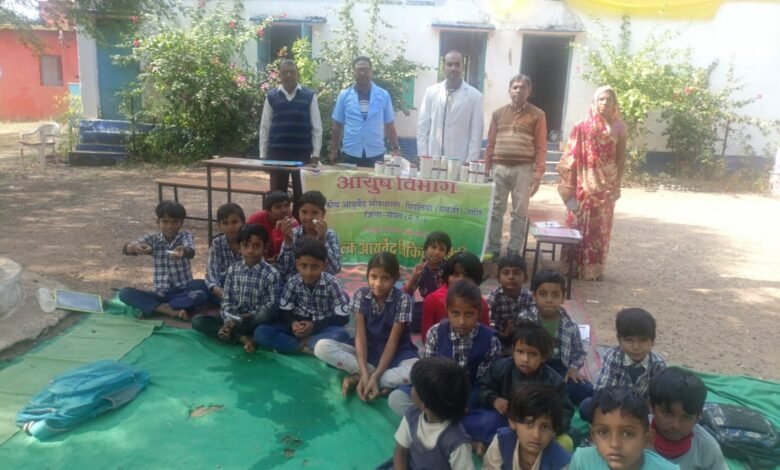 नि:शुल्क आयुर्वेद चिकित्सा शिविर सोमवार को शासकीय प्राथमिक विद्यालय राती तलाई में आयोजित किया गया। शिविर में आमवात, संधिवात, चर्म रोग, उदर रोग,विबंध, श्वास,कास, प्रतिशय, रक्त अल्पता, अर्श, गैस, अम्लपित आदि से पीड़ित रोगियों की जांच कर नि:शुल्क औषधियां वितरित की गई। शिविर में कुल 32 बच्चों का स्वास्थ्य परीक्षण कर निःशुल्क औषधियां वितरित की गई। डॉ.आबिद खान ने रोगियों को तनाव से मुक्ति, गर्भावस्था में आहार, स्वच्छता अभियान, दिनचर्या, पोषण से सम्बन्धित जानकारी दी। शिविर में पंचायत पदाधिकारी, औषधालय स्टाफ, शाला के प्रधान अध्यापक, शिक्षक, आंगनवाड़ी कार्यकर्ता एवं सहायिका आदि उपस्थित थे।
