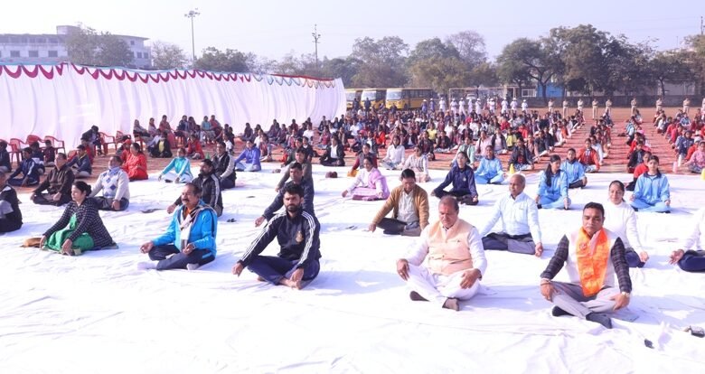नीमच की शिक्षण संस्‍थाओं के हजारों विद्यार्थियों ने किया सूर्य नमस्‍कार