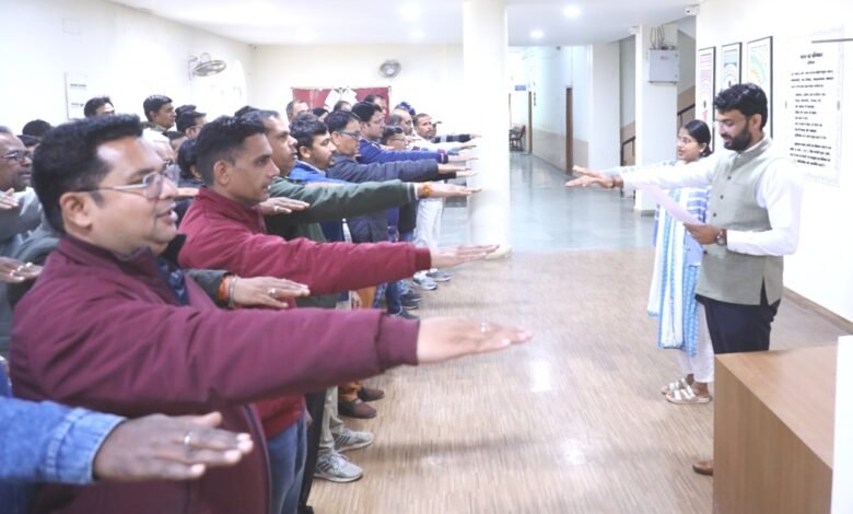 राष्ट्रीय मतदाता दिवस के अवसर पर शुक्रवार को कलेक्टोरेट नीमच में आयोजित कार्यक्रम में कलेक्टर श्री हिमांशु चंद्रा ने विभिन्न विभागों के उपस्थित अधिकारी-कर्मचारियों को 16वें राष्ट्रीय मतदाता दिवस की सामुहिक शपथ दिलाई। इस मौके पर डिप्टी कलेक्टर सुश्री श्रुति भयडिया सहित कलेक्टोरेट स्थित विभिन्न विभागों के अधिकारी कर्मचारी उपस्थित थे।