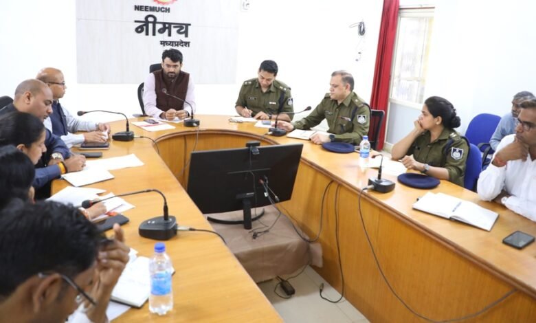 आगामी त्यौहारों के मद्देनजर जिले में कानून व्यवस्था की स्थिति को और मजबूत एवं सुदृढ बनाने के लिए कलेक्टर श्री हिमांशु चंद्रा की अध्यक्षता में जिले के सभी कार्यपालिक मजिस्ट्रेटो एवं पुलिस अधिकारियों की संयुक्त बैठक बुधवार को कलेक्टोरेट सभाकक्ष नीमच में आयोजित की गई। बैठक में फरवरी से जून 2026 माह तक के सभी त्यौहारों पर आवश्यक व्यवस्था सुनिश्चित करने के संबंध में विस्तार से चर्चा की गई। बैठक में पुलिस अधीक्षक श्री अंकित जायसवाल, एडीएम श्री बी.एस.कलेश, अतिरिक्त पुलिस अधीक्षक श्री एन.एस.सिसोदिया, सभी एसडीएम, एसडीओपी, सीएसपी नीमच सहित सभी कार्यपालिक मजिस्ट्रेट एवं थाना प्रभारी उपस्थित थे।
