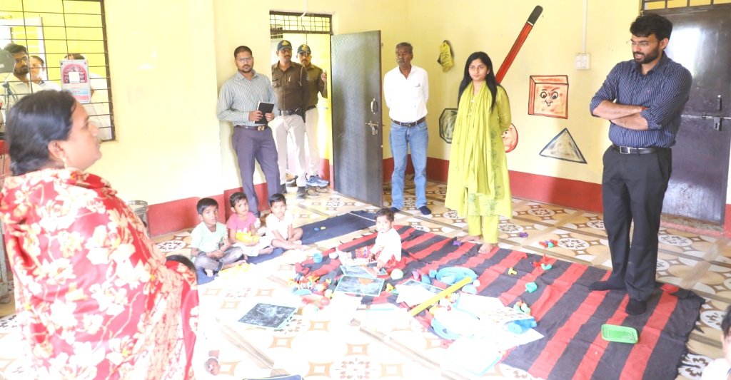 कलेक्टर ने किया आंगनवाडी केंद्र बरलाई का निरीक्षण