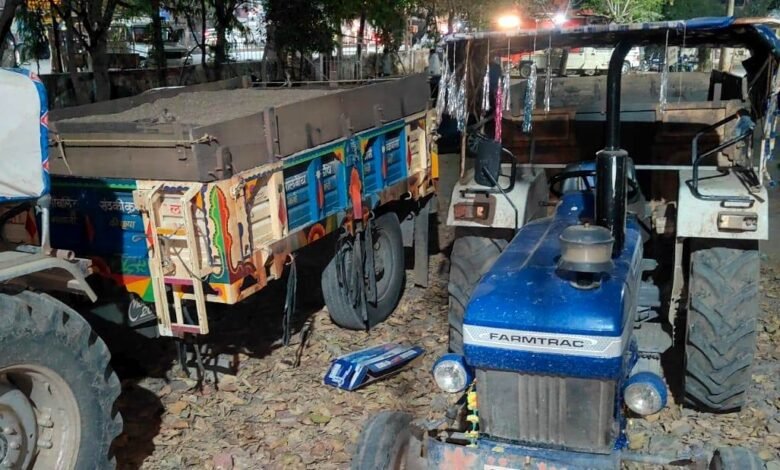 खनि अधिकारी श्री गजेन्द्र सिह डाबर ने बताया, कि खनिज निरीक्षक श्री सुनिल जाधव एवं खनिज टीम ने अवैध उत्खनन, परिवहन, भण्डारण के विरूद्ध मनासा क्षेत्र के ग्राम खानखेडी जीरो पाईंट में प्रभावी कार्यवाही करते हुए खनिज रेत का अवैध उत्खनन, परिवहन तथा भण्डारण करते हुए चार वाहनों को मध्यप्रदेश खनिज (अवैध खनन, परिवहन तथा भण्डारण का निवारण) नियम 2022 के तहत जप्त किया गया हैं। उक्त वाहनों को पुलिस थाना मनासा की अभिरक्षा में सुरक्षार्थ खडा किया गया हैं। अवैध उत्खन्न, परिवहन तथा भण्डारण में संलिप्त वाहनों में ट्रेक्टर पंजीयन क्रमांक-आईशर 485, ट्रेक्टर स्वराज 735, ट्रेक्टर एम.पी.14ए.सी.1975 एवं ट्रेक्टर क्रमांक फार्माटेक 45 शामिल हैं।