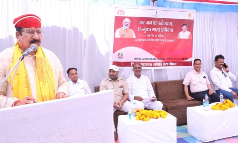 हमसब मिलकर देश एवं प्रदेश तथा नीमच जिले को टी.बी.मुक्त बनाने का संकल्प ले। टी.बी.का उपचार संभव है। समय पर पूरा उपचार लेने से मरीज टीबी से मुक्त हो सकते है। पोलियों मुक्त अभियान के अच्छे परिणाम आज हमारे सामने है। आमजनों को टीबी के प्रति जागरूक करें। यह बात विधायक नीमच श्री दिलीप सिह परिहार ने 24 मार्च विश्व क्षय नियंत्रण दिवस पर जिला चिकित्सालय में आयोजित टी.बी.मुक्त भारत के तहत 100 दिवसीय निक्षय अभियान का शुभारंभ करते हुए कही। इस मौके पर श्री मोहन सिह राणावत, श्री हेमंत हरित, श्री दारासिह, श्री नीलेश पाटीदार एवं अन्य जनप्रतिनिधि, मुख्य चिकित्सा अधिकारी डॉ.दिनेश प्रसाद, सिविल सर्जन डॉ.मेहन्द्र पाटील, डॉ.मनीष यादव भी उपस्थित थे।