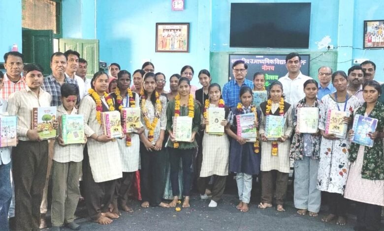 स्कूल चले हम अभियान ‘अंतर्गत शा.उ.मा.वि.सी.आर.पी.एफ.नीमच में प्रवेशोत्सव कार्यक्रम 2026-27 एवं निःशुल्क पाठ्य पुस्तक वितरण का आयोजन किया गया। कार्यक्रम के मुख्य अतिथि वार्ड पार्षद श्री वीरेन्द्र पाटीदार ने इस अवसर पर कहा कि आज‘‘ शिक्षा की नई उम्मीदें’’ का तात्पर्य है कि आज की शिक्षा केवल किताबों तक सीमित नहीं रही बल्कि बच्चों एवं युवाओं को बेहतर भविष्य, रोजगार, तकनीक और संस्कार देने की ओर बढ़ रही है। विद्यालय का वातावरण हमें प्रेम और सम्मान की भावना सिखाता है।