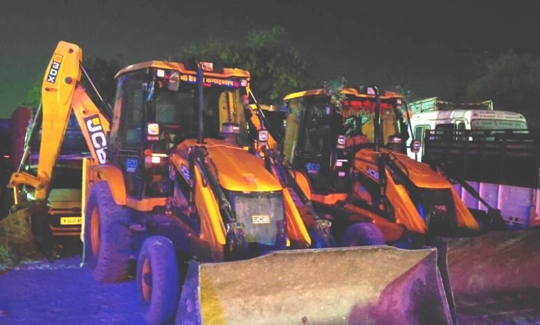 जिले में खनिज के अवैध उत्खनन परिवहन एवं भण्डारण के विरूद्ध शुक्रवार को खनिज टीम द्वारा कार्यवाही करते हुए जावद क्षेत्र के नयागांव एवं बोरखेडी क्षेत्र में मिट्टी का उत्खनन एवं अवैध परिवहन करते पाए गए पांच वाहनों को जप्त किया गया है। खनिज अधिकारी श्री गजेन्द्र सिह डाबर ने बताया, कि खनिज टीम द्वारा अवैध उत्खन्न परिवहन करते पाए जाने पर मिट्टी के जे.सी.बी.आर.जे.09ई.ए.5801, जे.सी.बी.आर.जे.35 ई.ए.0976, जे.सी.बी.आर.जे.09ई.ए.5982, जे.सी.बी.3डी.एक्स एवं डम्पर आर.जे.09जी.बी.3961 को जप्त कर, पुलिस थाना नयागांव की अभिरक्षा में खडे किए गए है।