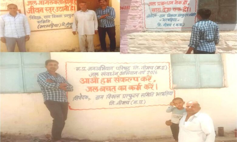 जल गंगा संवर्धन अभियान जल स्त्रोत सेवा समागम कार्यक्रम स्वच्छता श्रमदान एंव दीवार लेखन से जनजागरूकता